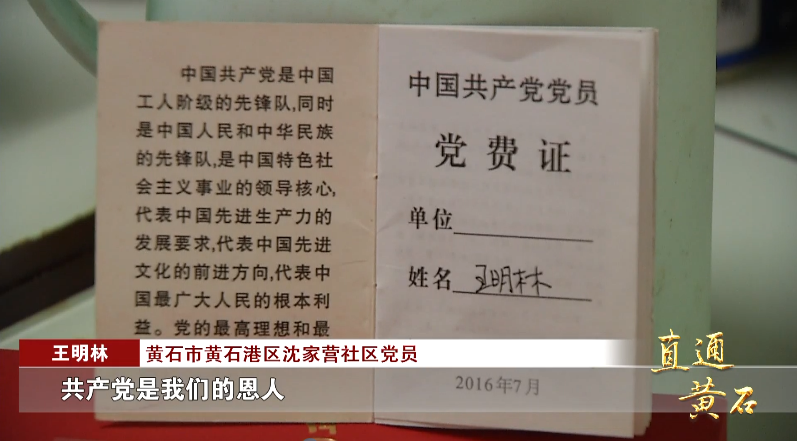 黄石市黄石港区沈家营社区党员 王明林:“(学校)领导知道以后,初中三年学费生活费,由人民政府全部资助,因此在我内心里深深地感到,生我的是娘 养我的是党。”