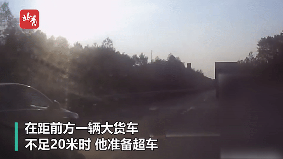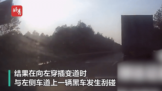 记录仪画面显示:当日下午16:33许,李某驾车以110km/h的速度在车道上行驶。在距前方一辆大货车不足20米时,李某准备变道超车。此时,他的车头刚刚超过左侧车道的一辆黑色小车一点,结果在穿插变道时,车尾与黑色小车车头发生刮碰,李某的车瞬间失控撞向中央护栏。