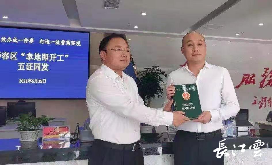 今年6月25日,在华容区行政审批局政务服务大厅,联投新城集团党委副书记、华容投资公司董事长胡黎明拿到当天办结的15个项目的《不动产权证》《建设用地规划许可证》《建设工程规划许可证》《设计方案批复》《建筑工程施工许可证》,成为全市实现“拿地即开工”五证同发的首例受益者。