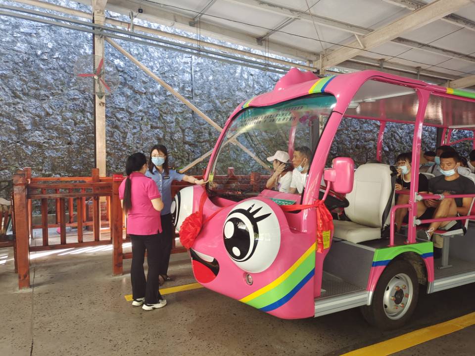 10月1日,三台粉嘟嘟、萌萌哒的“大眼睛”观光车正式亮相三峡大瀑布景区,让远道而来的游客眼前一亮。