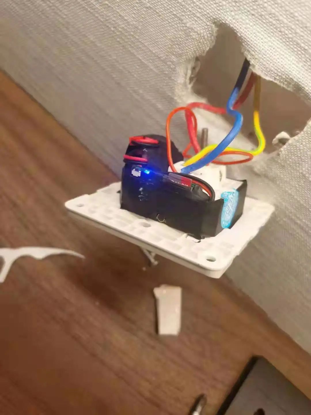 唐晨提供的视频显示,隐藏在充电插板后的摄像头约肥皂大小,闪着蓝色的光,里面插着一张储存卡。