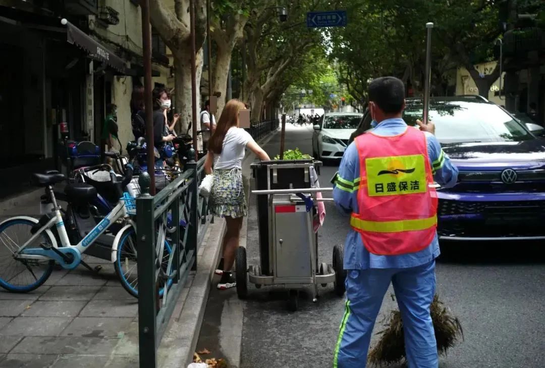 一名打扮十分时尚的女子用蔬菜和Prada包装袋拍完照片后,便把菜扔进了街边的垃圾桶,令一旁的环卫工人目瞪口呆。