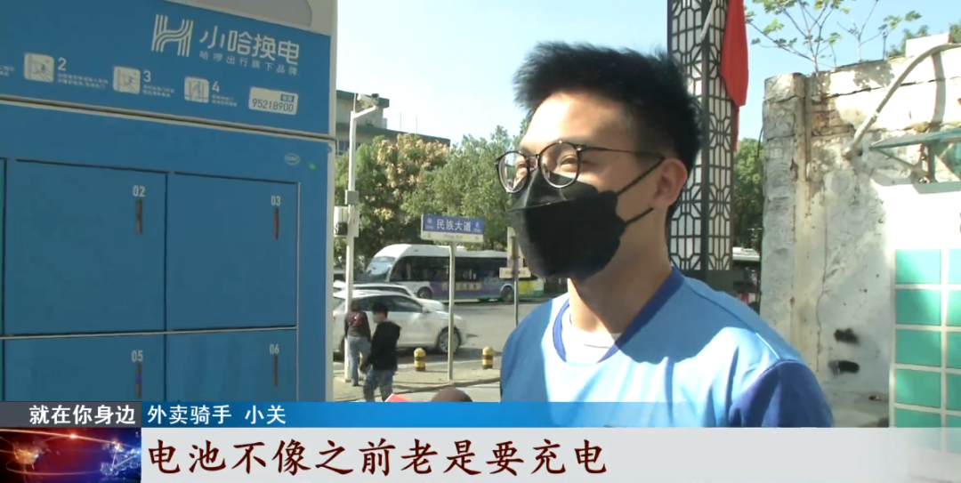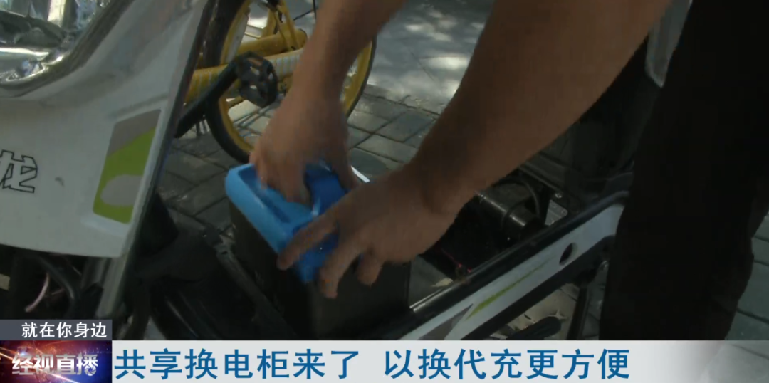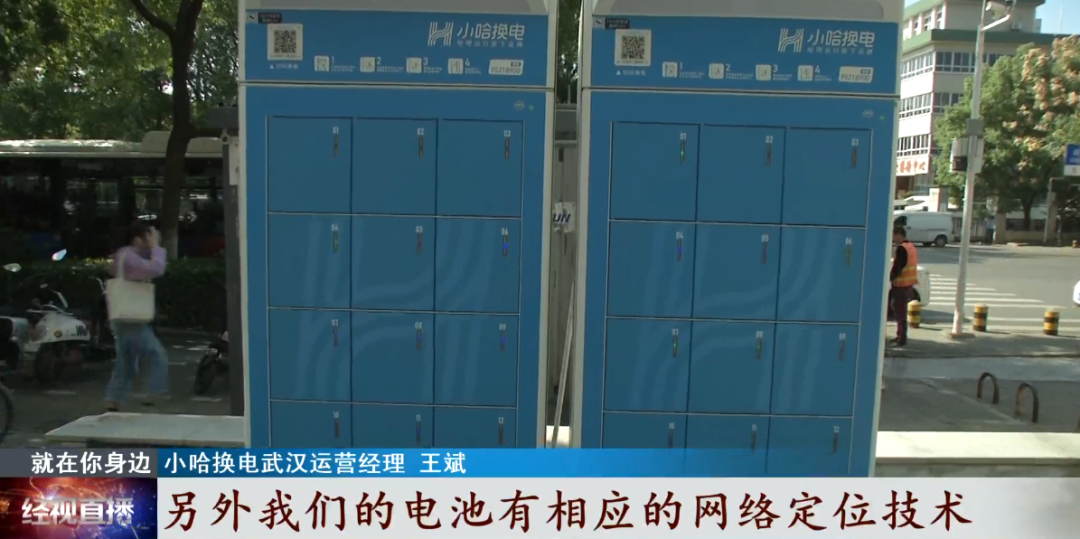 在武汉一家商圈门口,两排蓝色的柜子格外醒目,一名外卖骑手站在柜前,用手机扫码打开柜门,将自己车上快没电的电池取出,放进柜中,然后从另一个柜中,取出一块充满电的电池,装进自已的电动车内。