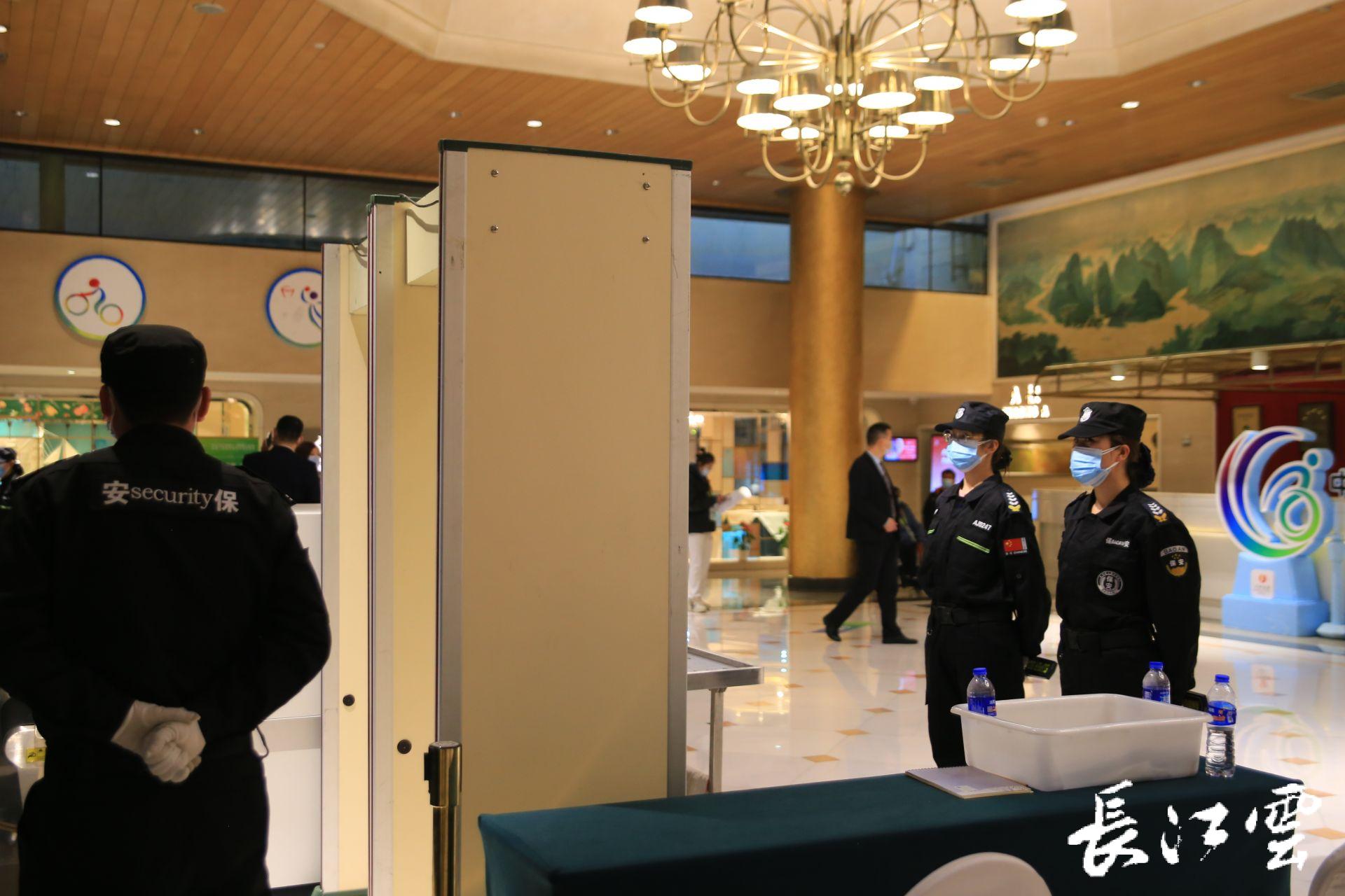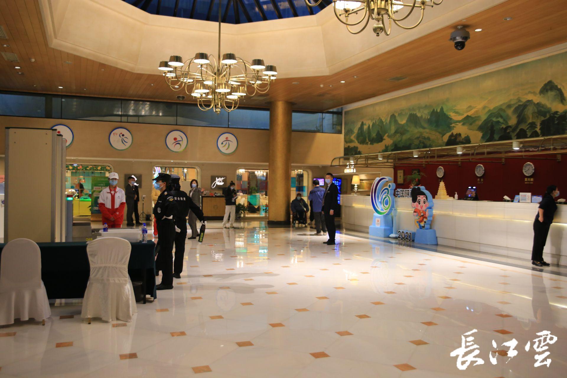 湖北代表团田径队驻地在西安市碑林区互助路的西安建国饭店,地处西安市中心,出于疫情防控及安全考虑,酒店在本次残特奥会期间处于全封闭状态。酒店大门及大堂入口共设置了两道安保防线,每道防线均有安保人员及疫情防控人员24小时值班把守。