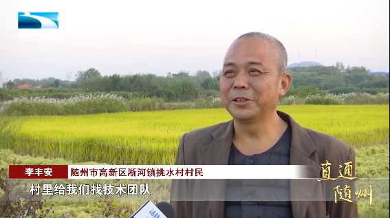 随州市高新区淅河镇挑水村村民 李丰安:“村里给我们找技术团队,我们只出土地,技术和生产由他们负责,今年我们平均亩产1500斤左右,按每斤1.2元计算每亩可得1800元,我们每亩田能增收700元左右。”