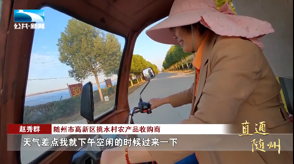 随州市高新区挑水村农产品收购商 赵秀群:“天气好点的话我每天早上6点钟就起床,沿着大棚吆喝,天气差点我就下午空闲的时候过来一下。”