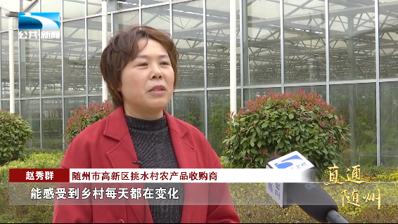 随州市高新区淅河镇挑水村农产品收购商 赵秀群:“和挑水村打交道有数十载,能感受到乡村每天都在变化,路宽了、灯亮了、沿途风景干净整洁,老百姓也富裕起来了。”