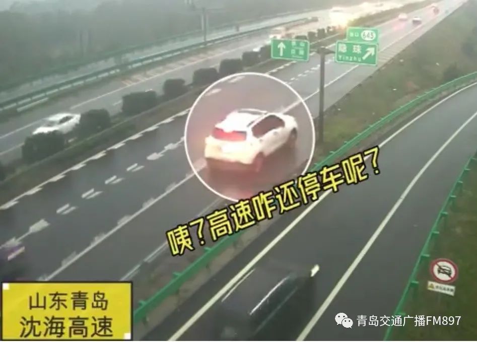 10月7日,青岛交警同三高速公路大队指挥室民警视频巡检时,发现一辆鲁B牌照的SUV小客车行驶至辖区沈海高速645公里处时,突然减速停在了应急车道内。