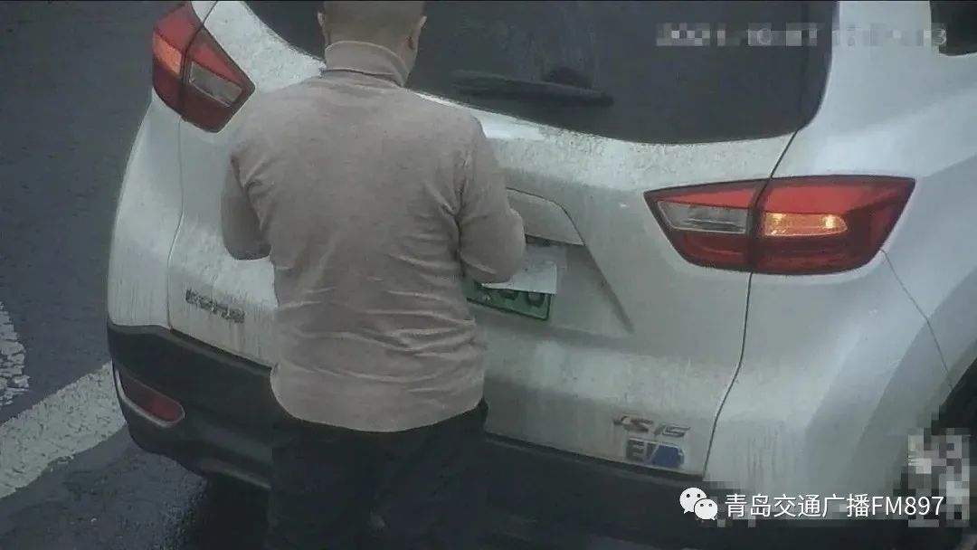 经询问得知,驾驶人赵某从平度市区赶往黄岛区的行车过程中,因为错过了匝道口,担心车辆被电子监控抓拍后受到处罚,便将车停靠在应急车道旁,用报纸遮盖住后车牌进行倒车。