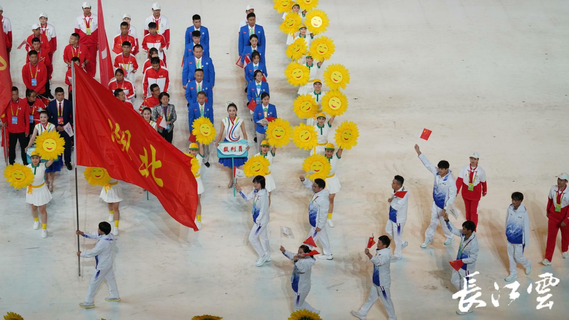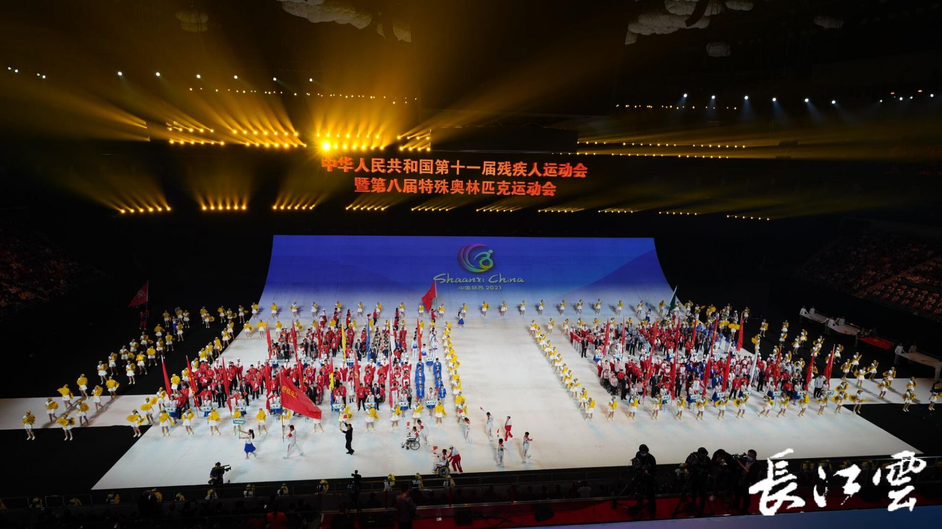 今晚8点(10月22日)在西安奥体中心体育馆,中华人民共和国第十一届残疾人运动会暨第八届特殊奥林匹克运动会隆重举行。全场一共有34支代表队出场,湖北队作为第17支队伍出场。湖北省105名荆楚健儿代表湖北省征战本届残特奥会,他们将在本届残特奥会的13个大项中展开角逐。