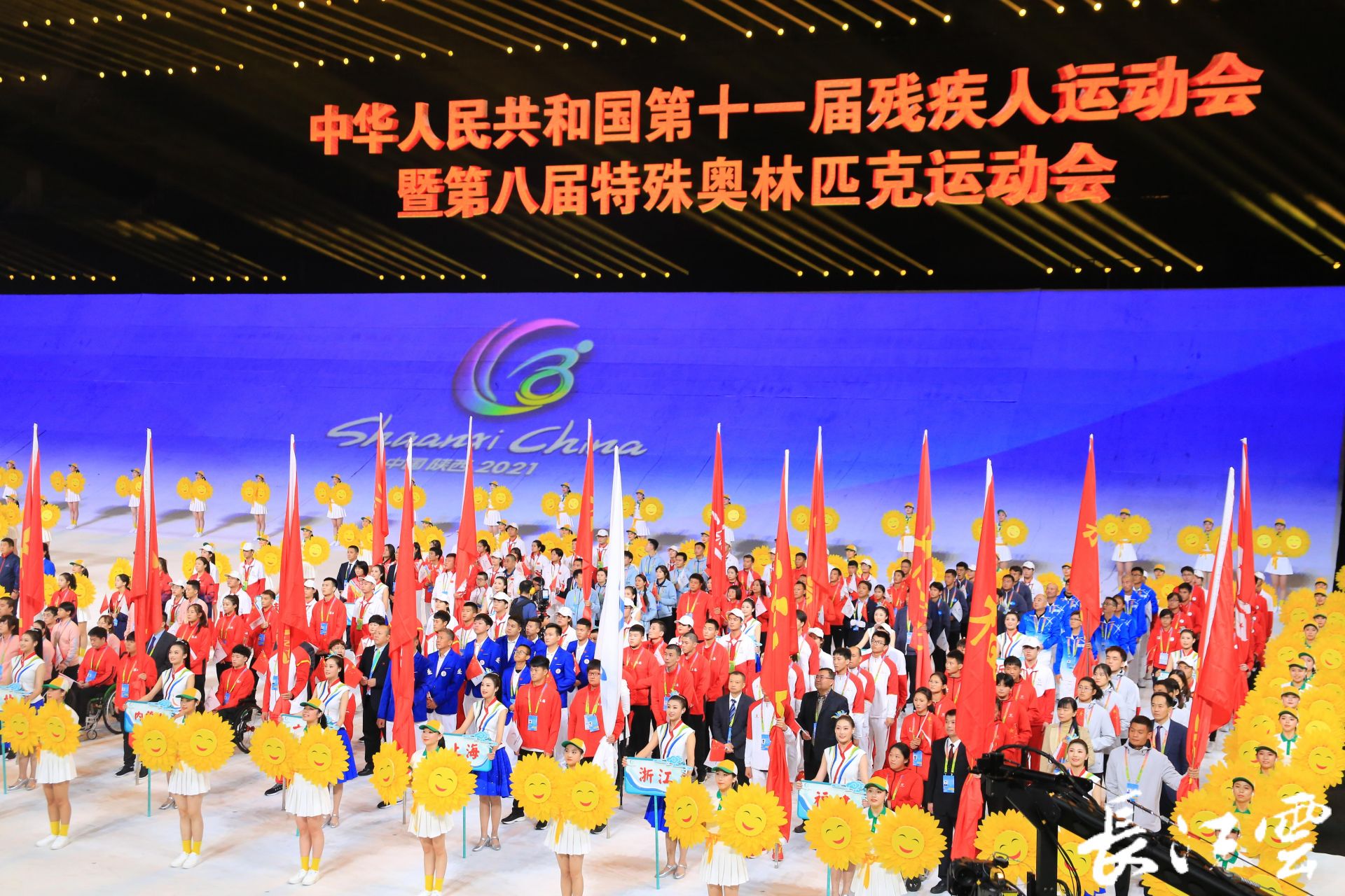 10月22日晚,全国第十一届残运会暨第八届特奥会开幕式后新闻发布会在西安奥体中心主新闻中心举行。陕西演艺集团负责人、残特奥会开闭幕式总导演等出席,对残特奥会开幕式相关内容进行发布。