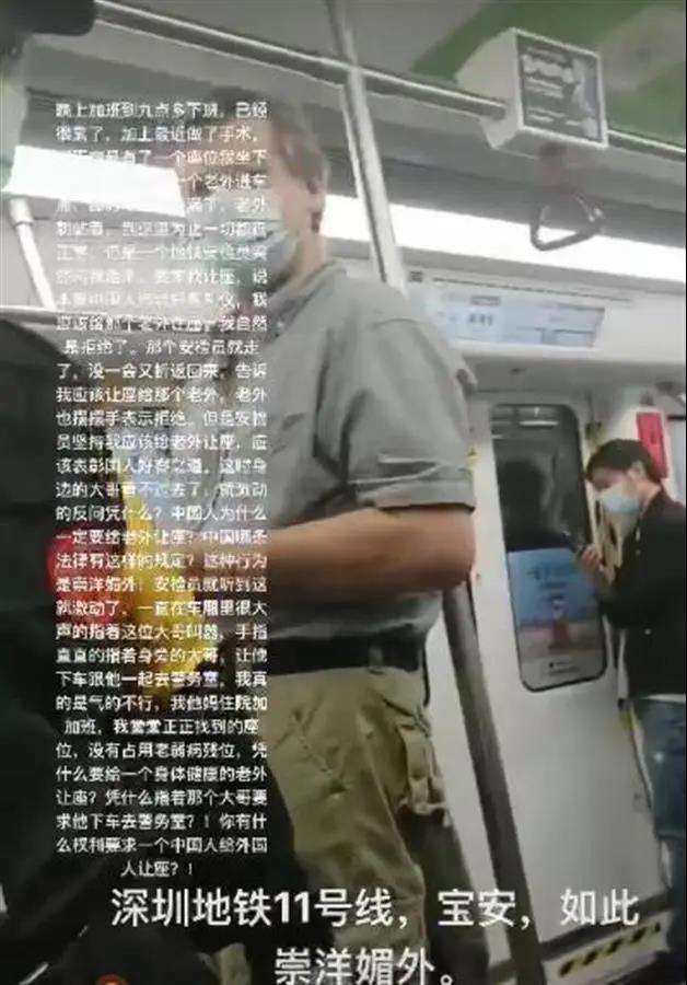 地铁乘客被要求给外国人让座