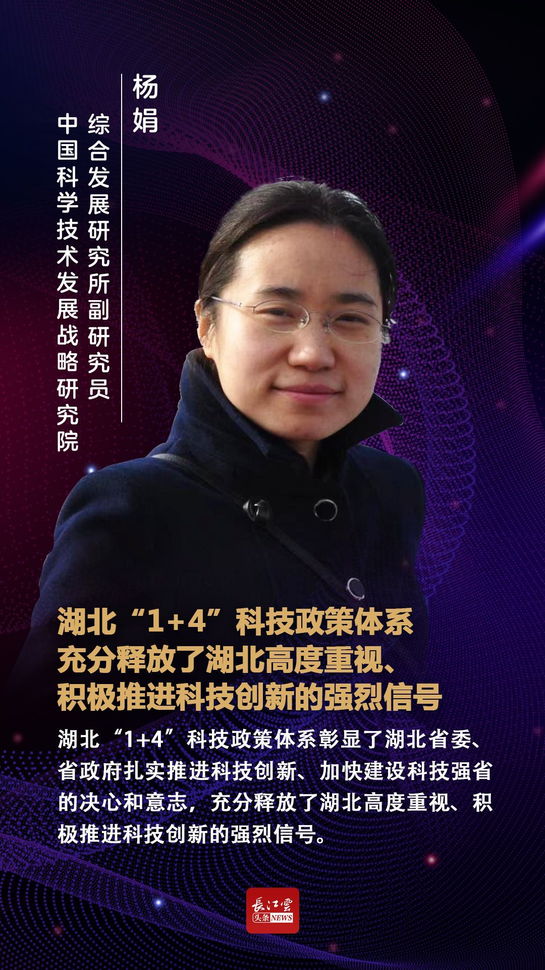 对于湖北“1+4”科技政策体系,中国科学技术发展战略研究院副研究员杨娟认为,这是湖北深入贯彻落实习近平总书记关于科技创新重要论述和对湖北殷殷嘱托的具体行动和生动实践,彰显了湖北省委、省政府扎实推进科技创新、加快建设科技强省的决心和意志,充分释放了湖北高度重视、积极推进科技创新的强烈信号。