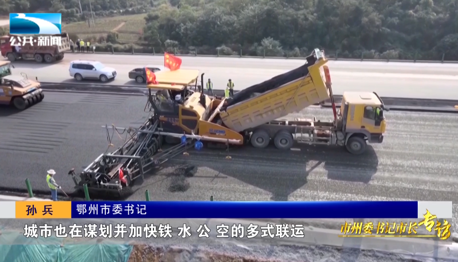 鄂州市委书记 孙兵:“另外我们还在加快集疏运体系的建设,城市也在谋划并加快铁、水、公、空的多式联运,尤其是市域铁路的建设,要把高速铁路引入,还要把有关的一些市域铁路、两个机场的快捷通道等等,把路网还要进一步加密、搞发达。甚至我们也还在谋划把武汉的地铁,现在十一号线已经到了葛店,要东延到花湖机场,甚至还可以向东到黄石、到黄冈。”