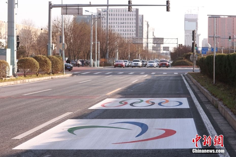 11月13日,在北京奥林西路冬奥会专用道标识。中新社发 陈晓根 摄 图片来源:CNSPHOTO