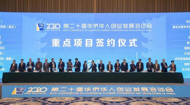 2020年征集995个海内外项目,主会场签约80个项目,投资过亿元项目59个(含投资过十亿元项目18个),总签约金额506.7亿元,涵盖生物医药、现代制造、IT光电子等领域,已有76%在湖北落户。