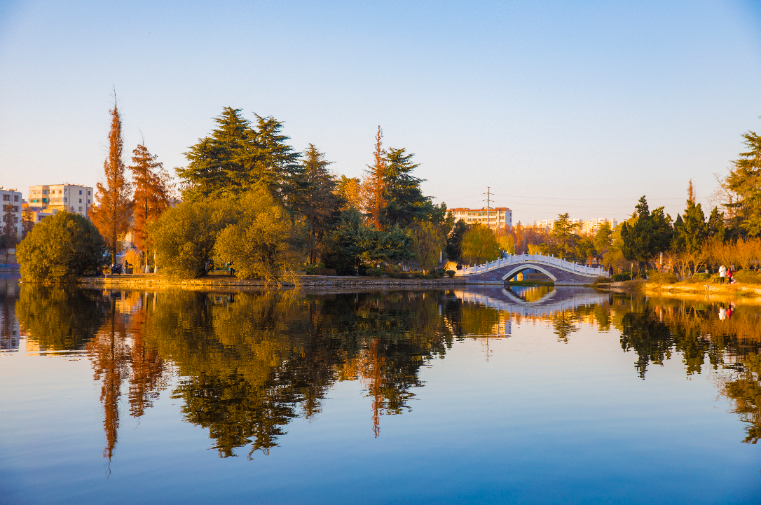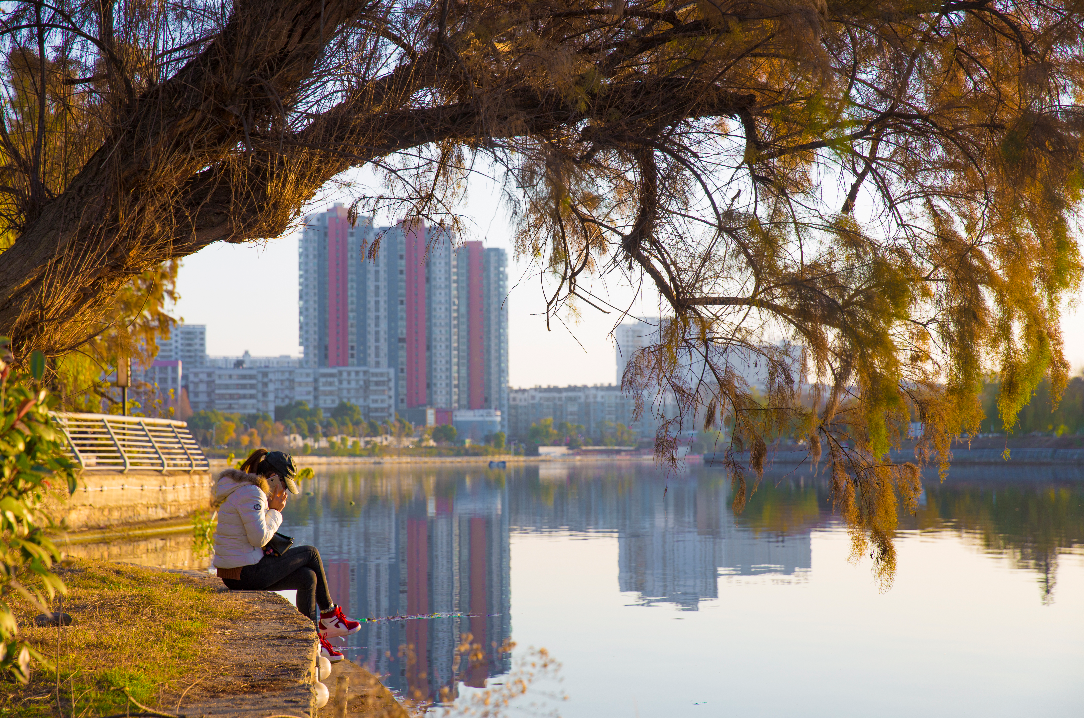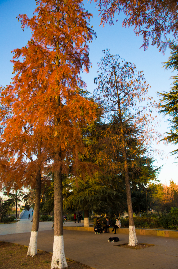 初冬,严寒未致,秋色犹在,在暖阳的照射下,公园一片五彩斑斓,阳光从枝头间洒落,将草坪染的金黄,游人尽情地享受着这一刻的温柔,一切美好也被定格在这时光里。