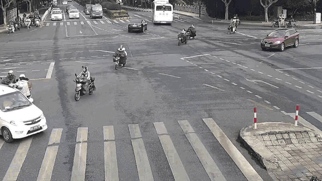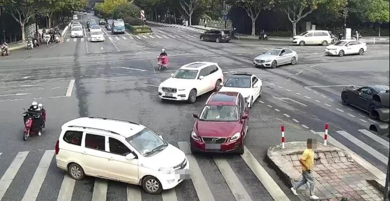 就在特警车刚刚发动的时候,对向突然疾驶来一辆面包车,横停在斑马线上,车没熄火,一名男子跑下车,边跑边朝着巡逻车挥手。
