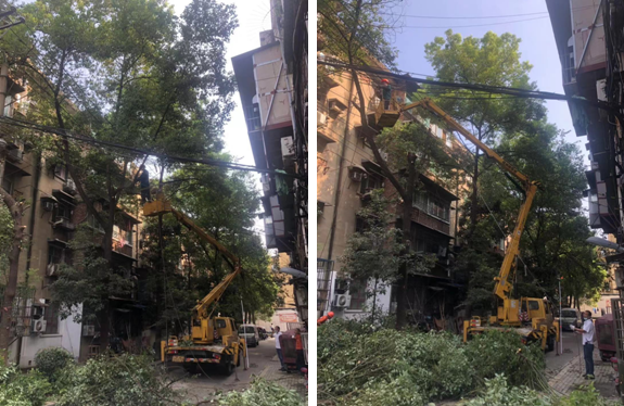 工作人员了解情况后,立即联系园林局工作人员到小区进行修剪。9月3日早上,工作人员赶到现场,联系供电局工作人员对桥机二小区断电后,利用电锯、绳索、高枝锯等设备,对树木和树枝进行了修剪,并及时将修剪下的树枝及时清运,保证小区行人的安全通行和环境卫生。经过有序修剪,“剪除”了居民的烦恼,既减少树木繁茂给居民带来的隐患,也有效改善了居民的居住环境,受到院内居民的一致称赞。