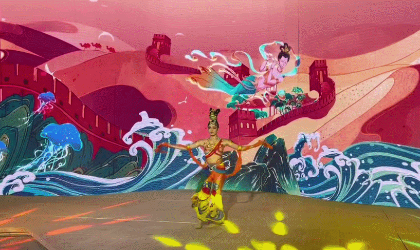 展馆里的“双面环绕柔性屏卷轴”全国最大,整个屏幕无接缝,观展必打卡。360度的曲面上,一幅流动的画卷呈现中国壮美风光,长江川流不息,黄河奔涌澎湃,相当震撼。