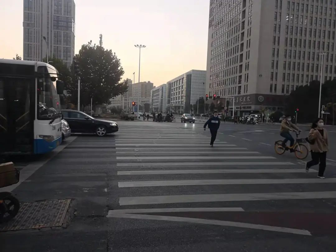 11月27日下午,记者在此路口看到,当银谭路往武汉客厅方向绿灯亮时,行人按照正常步行速度,最多只能通过约一半多一点的马路,电动车正常行驶刚好可通过。
