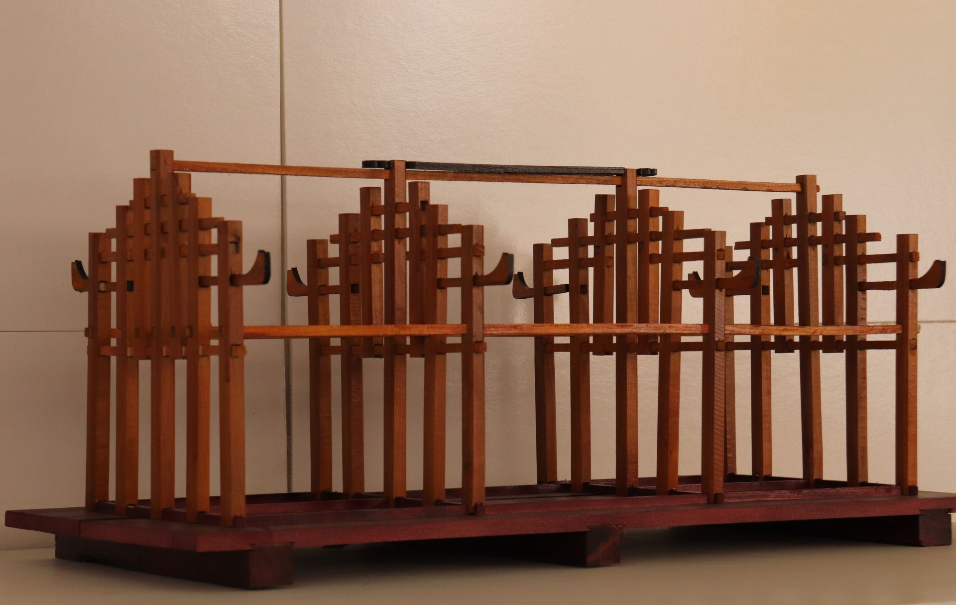 精巧美观的木质餐具、茶具、木凳,全榫卯结构的土家族吊脚楼模型,凝聚着中国匠人的智慧;色彩鲜艳的手工编织品、葫芦、傩戏面具、西兰卡普、漆扇,古色古香的秦简,逼真传神的皮影人偶,无不体现出中国传统手工艺的博大精深。师生们一边观赏,一边发出阵阵赞叹声。