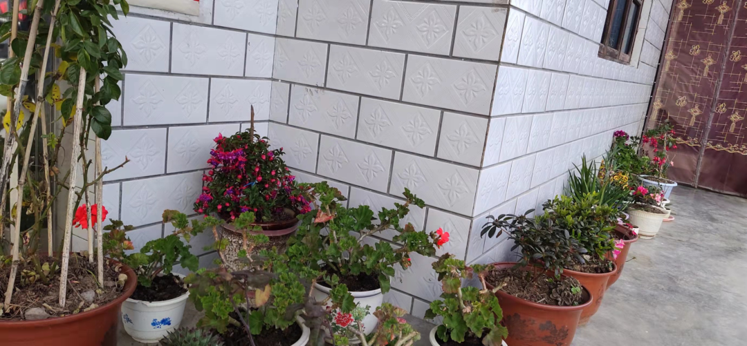 江苏振说,这些花平时都在崖边,最近天气冷了,才抱到屋檐下。