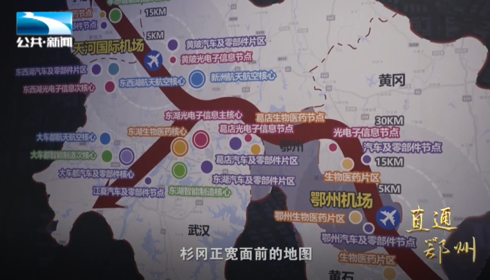 杉岡正宽面前的地图,就是武汉与鄂东三兄弟的画像。湖北省在12月2号宣布,要将这个人口占全省六分之一,GDP仅占11.08%,目前看来不是很靠前的地方打造成“武汉城市圈第二级”,这个底气就在鄂州花湖机场。