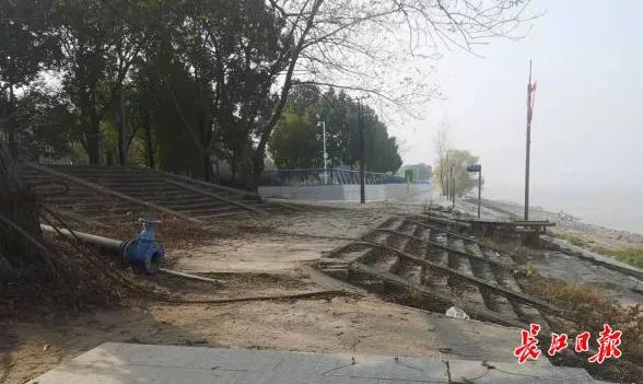 12日上午,记者又反方向从青山江滩“区政府广场”往“水上派出所”方向走了一趟,沿着亲水平台步道,看到有三处阻隔,其中两处是因为排放渠道做了隔离护栏,另一处则是在一个旧码头边上。