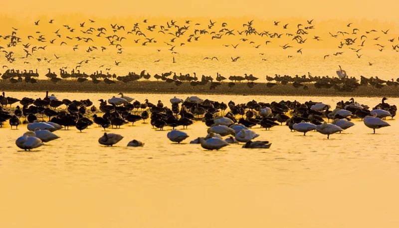 网湖用越来越清的水、越来越肥的鱼、越来越鲜的草,迎接着这群活泼好动的“小精灵”。每年冬天,候鸟们也不远万里,从各地奔赴网湖,如约而至。