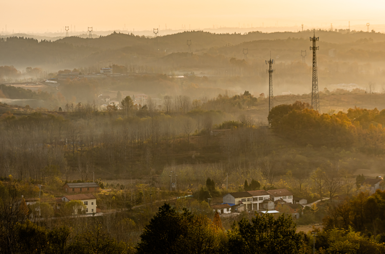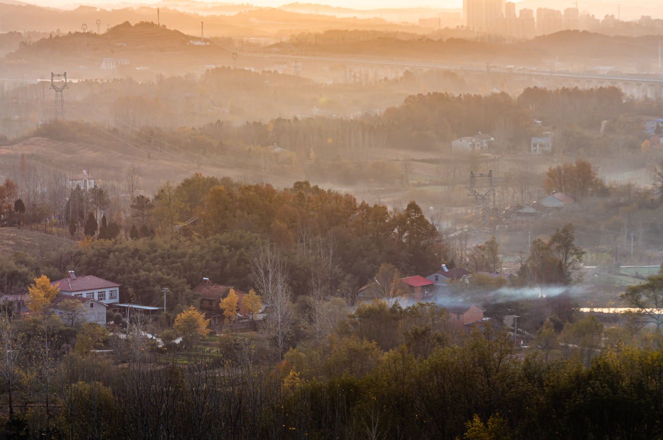 随着太阳慢慢升起,云雾散去,大地渐渐显现在冬日的温暖中。一幅生态乡村的美丽画卷跃然眼前。