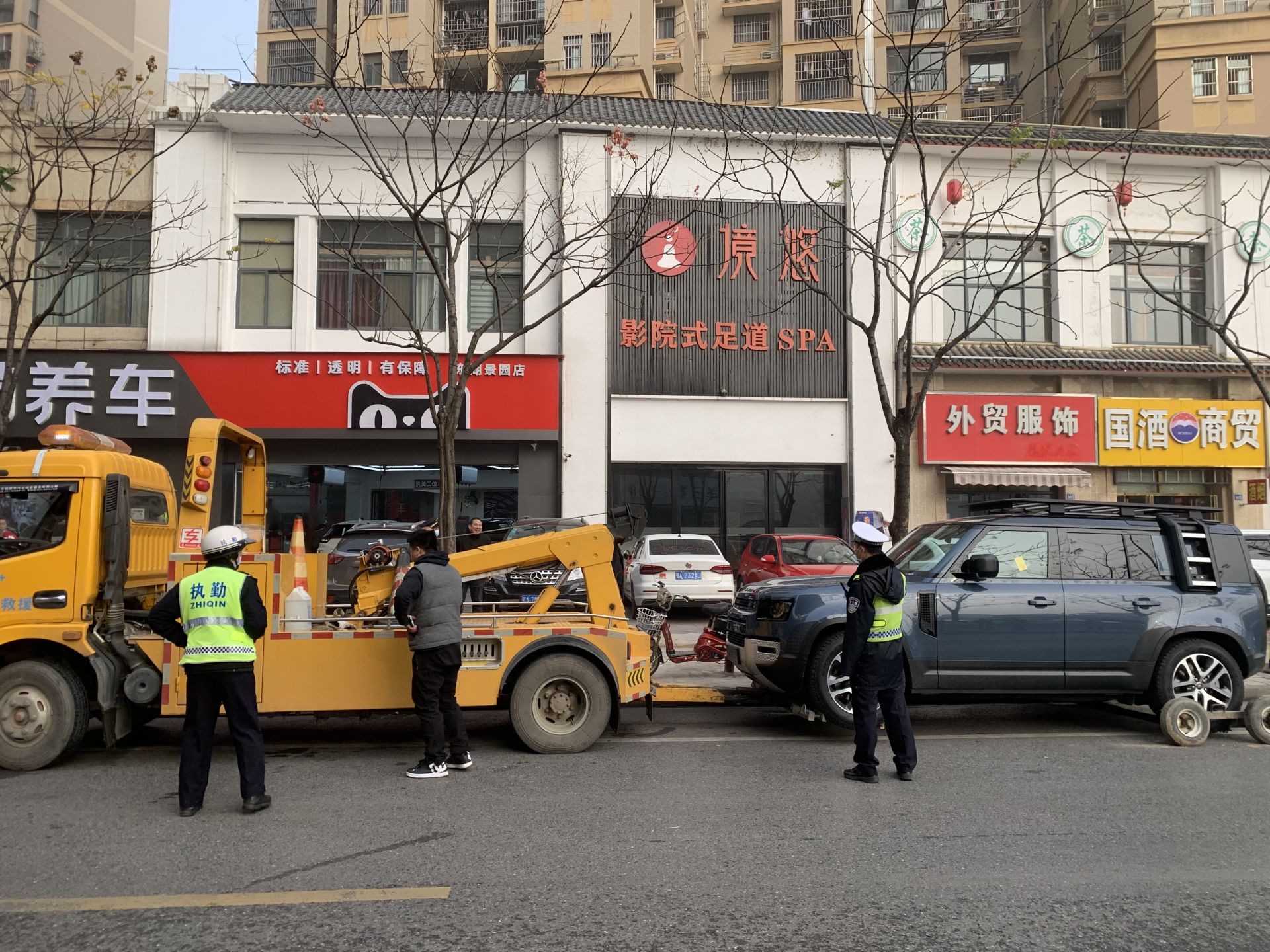 12月17日上午8时,洪山区交通大队民警在欢乐大道开展电动车交通秩序整治时,发现一辆黑色越野车停放在路边非机动车道上,导致过往电动车不得不借道机动车道绕行。民警立即上前查看,发现该车没有悬挂机动车号牌,在前挡风玻璃下摆放着一张“鄂A8***9”临时号牌,但临时号牌的有效期至12月4日,已经过期10余天,驾驶室车窗上还贴着一张“违法停车提示单”。由于联系不上车主,为保障道路通畅,民警现场拍照取证后依法将该车辆进行拖移暂扣。
