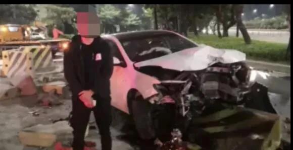 11月25日凌晨4时许,男子董某酒后驾驶粤TN××7S号白色小车在广东珠海大道上失控,撞向水泥护栏。