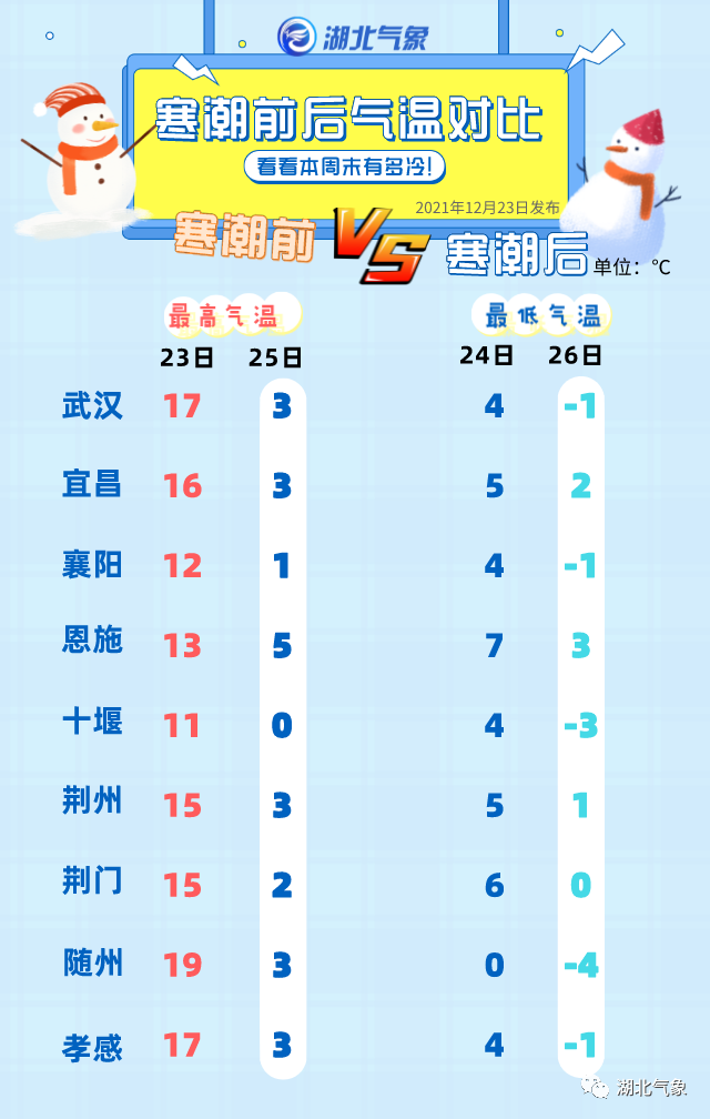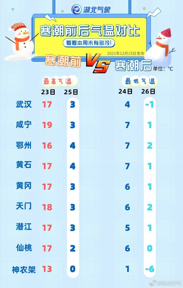 同时,未来几天的最低气温下跌得也比较厉害,明天早晨湖北省北部最低气温-2~0℃,南部1~3℃,后天(26日)最低气温北部-5~-2℃;南部-1~1℃,将刷新立冬以来最冷记录。