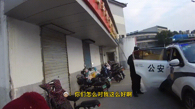 民警扶着老人走向警车,开启了“可可爱爱”的对话。