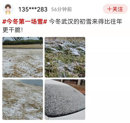 今天到来的这场“初雪”挺贴心,中心城区很多地方地面上还见不到积雪,部分区域的车身、地面有薄薄的积雪,下雪对城市的出行影响不太大。