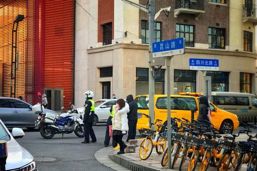 12月26日中午,上海市虹口区四川北路、昆山路口,一根三四米高的金属道路指示牌轰然倒下,不幸砸中一名骑着电动自行车路过的女子。