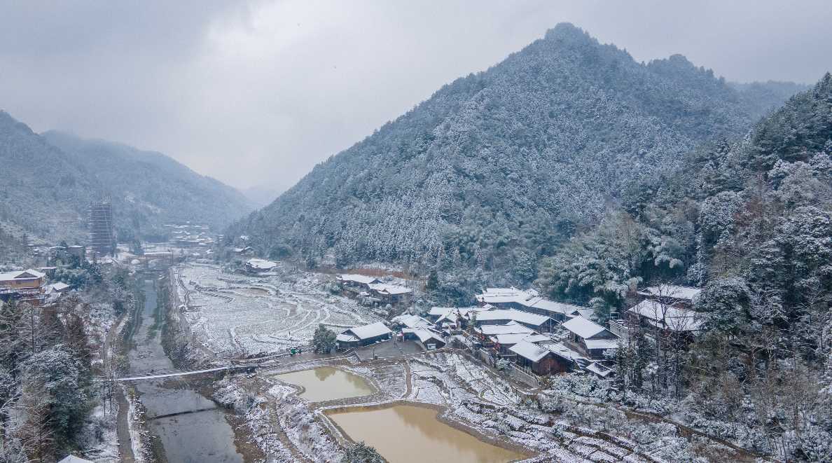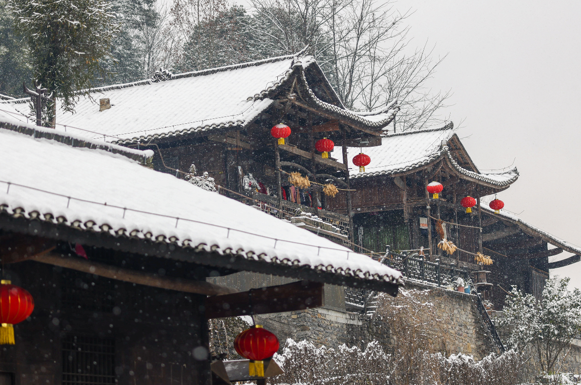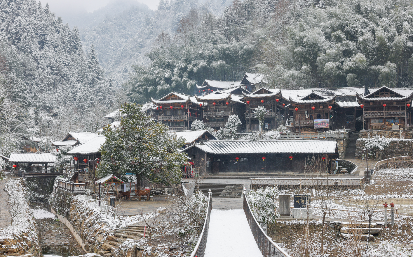12月27日,宣恩县沙道沟镇彭家寨迎来一场大雪,银装素裹的百年古寨隔着影影绰绰的雾气,宛如一幅天然的国画。