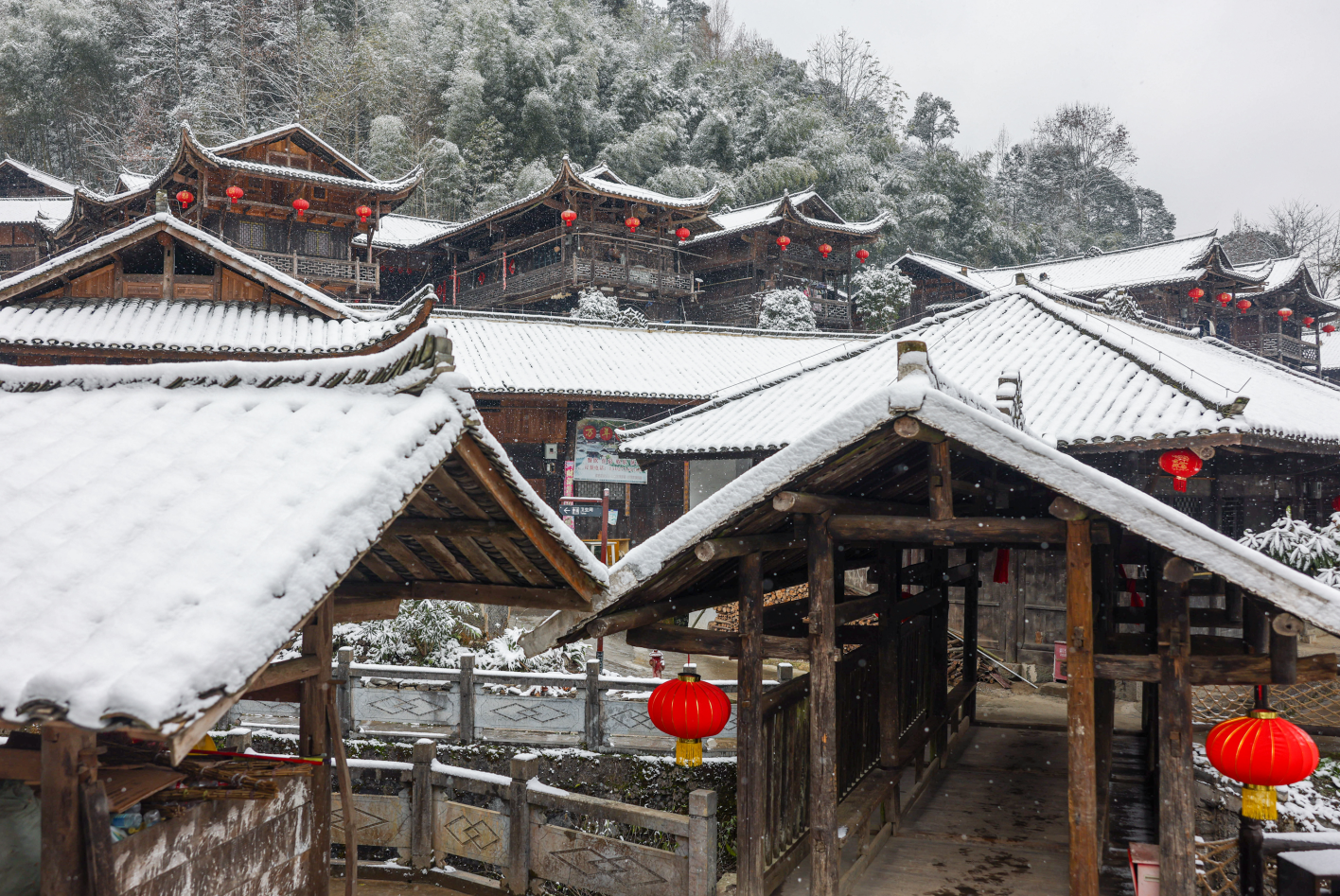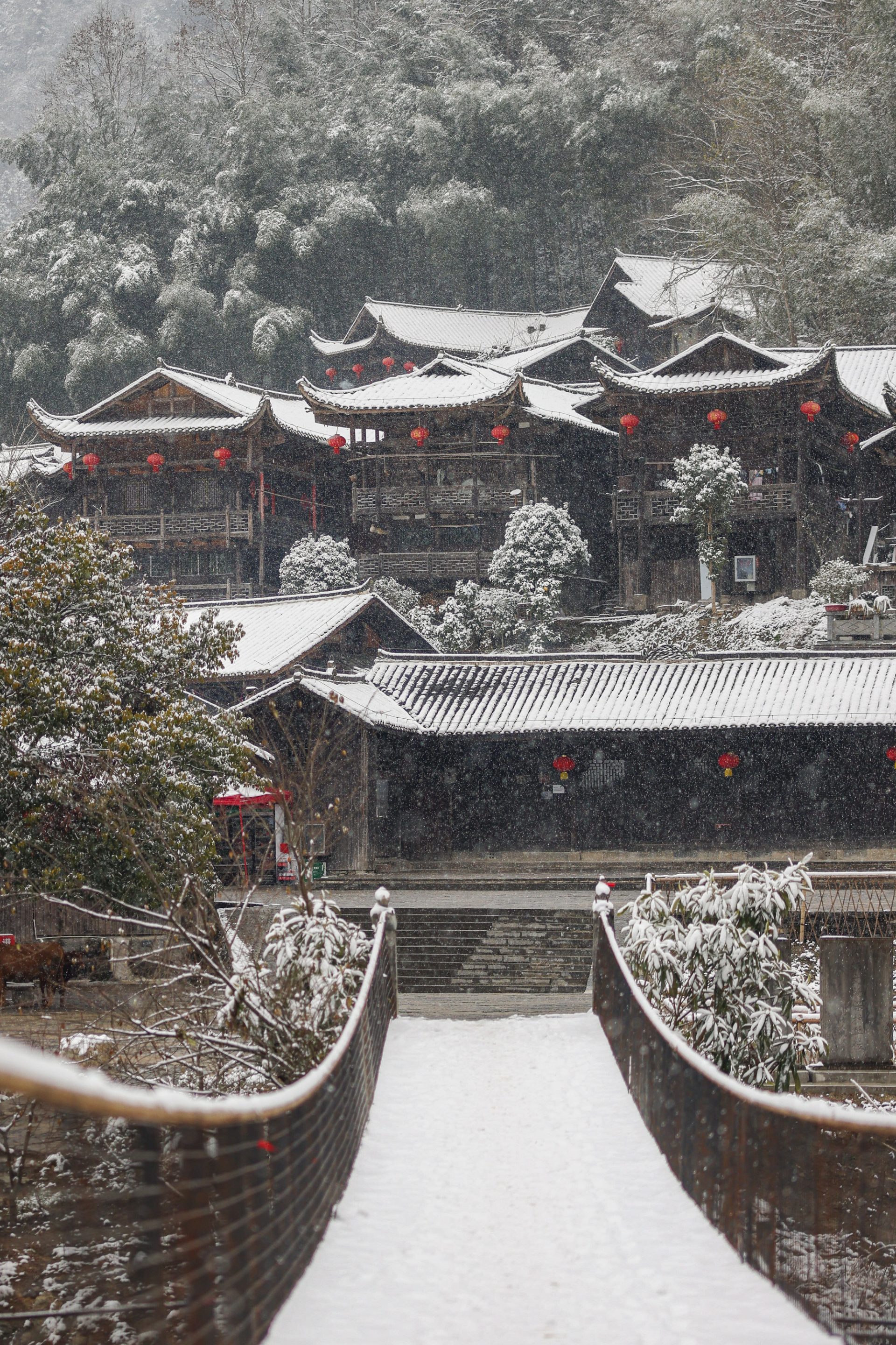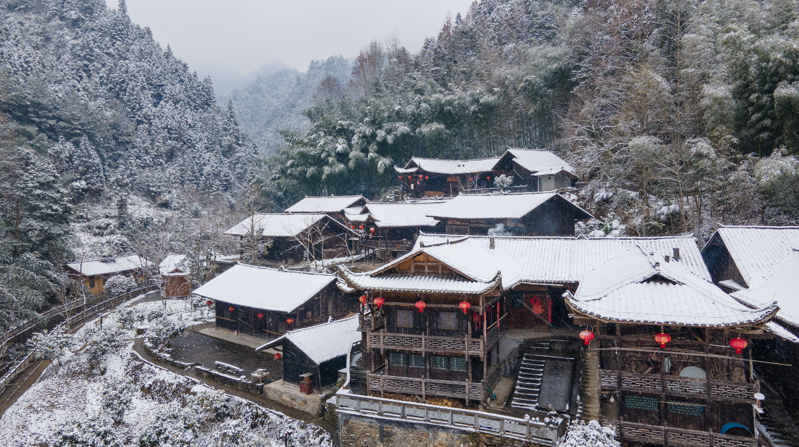 12月27日,宣恩县沙道沟镇彭家寨迎来一场大雪,银装素裹的百年古寨隔着影影绰绰的雾气,宛如一幅天然的国画。