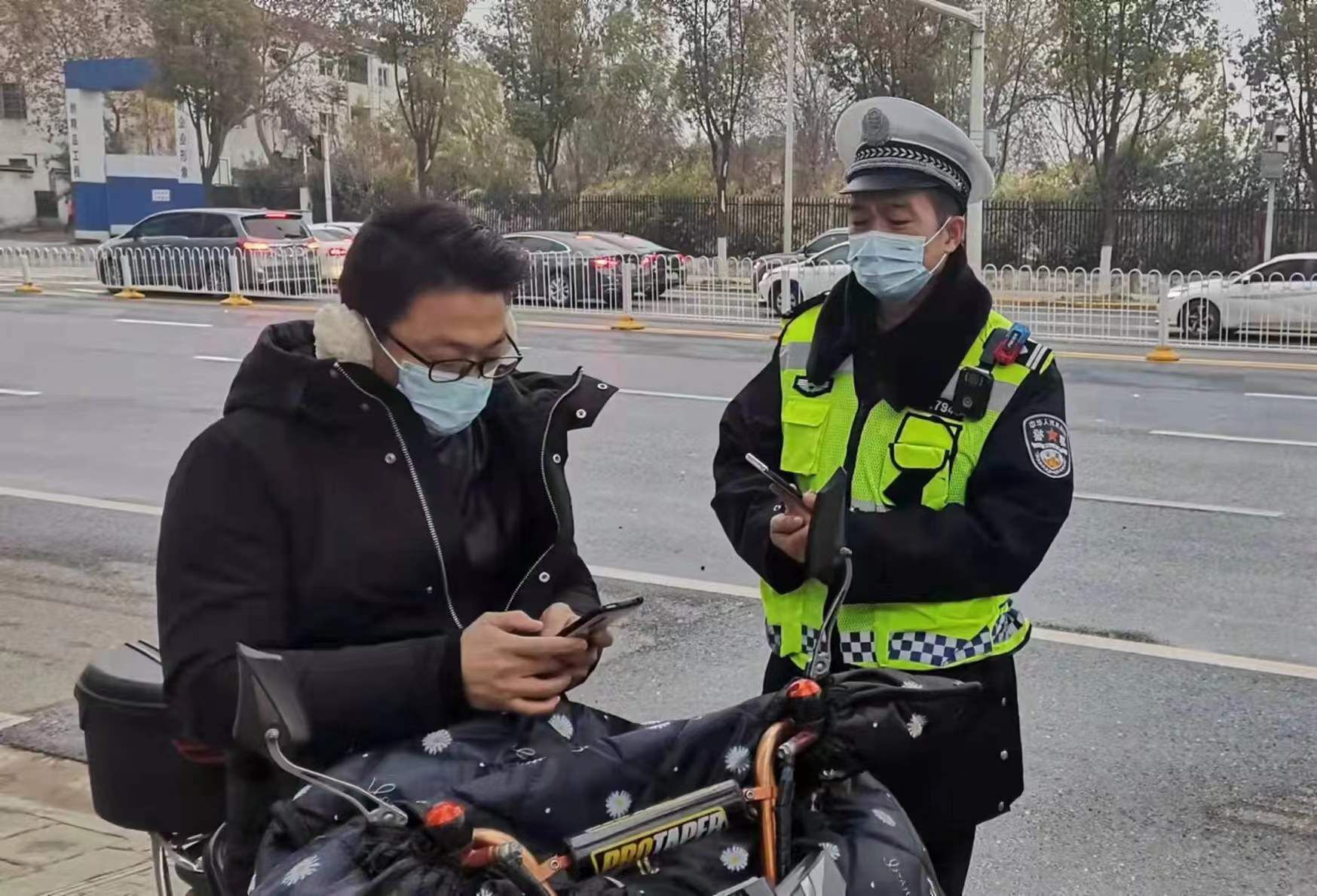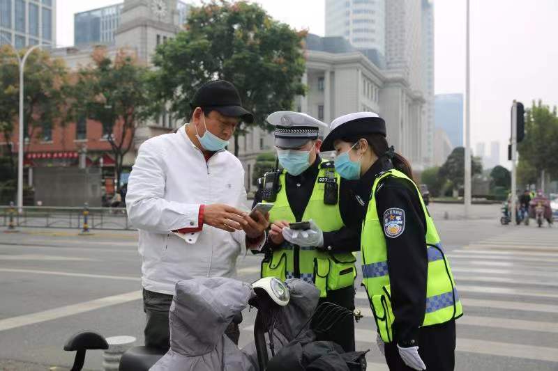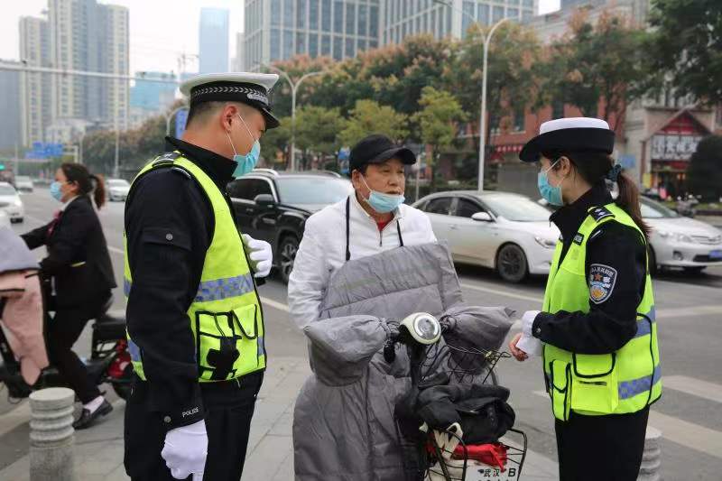 武汉市公安交管局秩序处民警介绍,交通秩序综合治理行动开展以来,执勤民警通过“电动自行车安全教育须知”小程序、发放“武汉交警致广大市民的一封信”等方式,向广大市民普及交通知识和电动自行车安全出行规范,严管电动自行车闯红灯、逆行、不按道行驶、违法载人等十类交通违法行为的同时,不断提醒驾乘人员规范佩戴安全头盔。对于上路行驶未佩戴安全头盔的驾驶员,通过小程序扫码,引导电动自行车驾驶员学习、知晓相关法规,逐步养成安全文明骑行的习惯;深入社区开展宣传劝导,联合社区工作人员发放《电动自行车驶出小区“四不准”》宣传页;联合行业主管部门,对电动自行车销售企业、门店开展全面排查、清理,强化源头管理,消除电动自行车安全隐患。