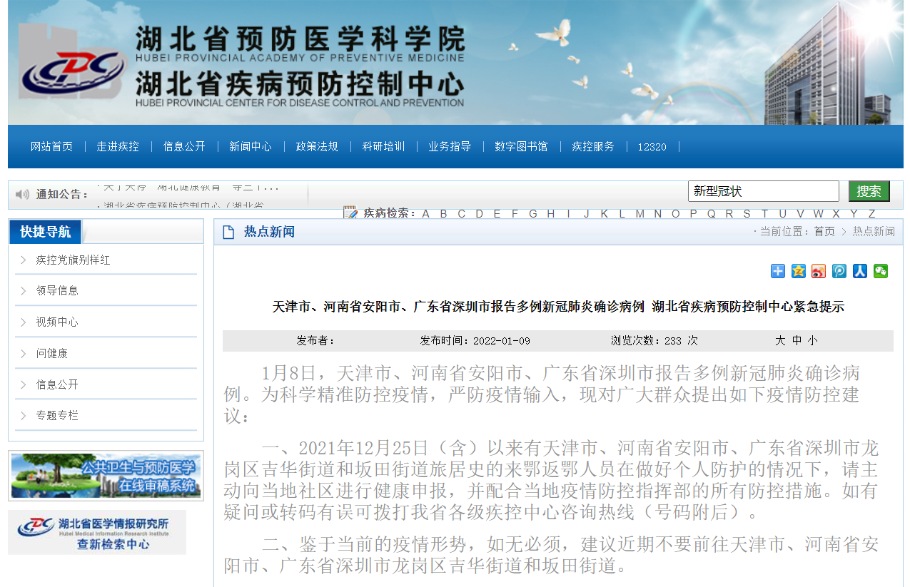 一、2021年12月25日(含)以来有天津市、河南省安阳市、广东省深圳市龙岗区吉华街道和坂田街道旅居史的来鄂返鄂人员在做好个人防护的情况下,请主动向当地社区进行健康申报,并配合当地疫情防控指挥部的所有防控措施。如有疑问或转码有误可拨打我省各级疾控中心咨询热线(号码附后)。