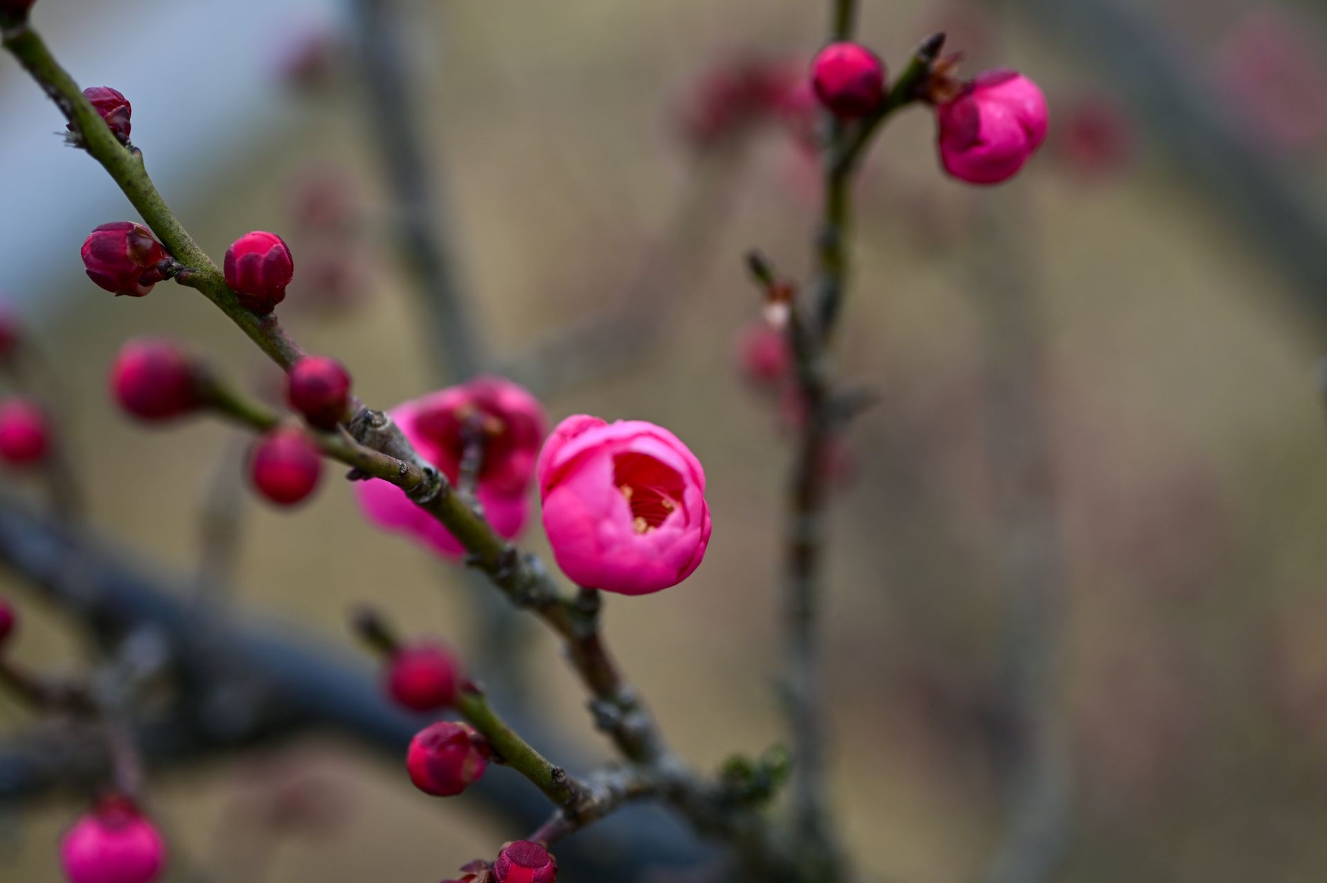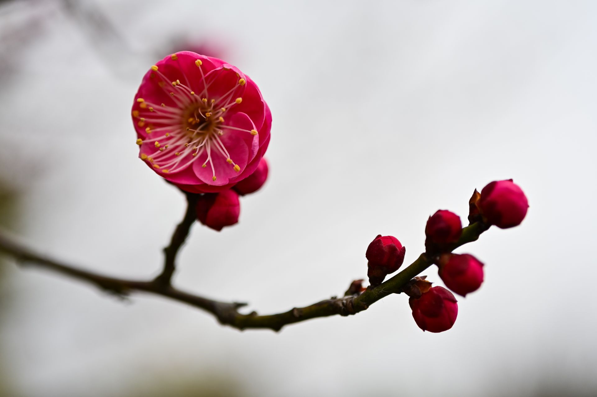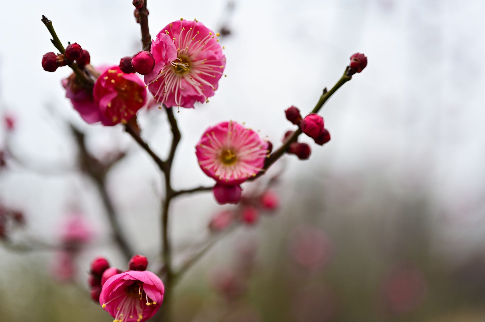 小寒刚过,湖北枣阳市中兴公园里的红梅含苞吐蕊,傲寒绽放。