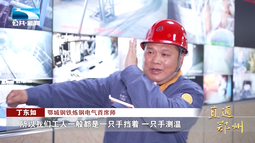 鄂城钢铁能动厂煤防工 姚汉文:“这个屏显示的是鄂钢8万方的煤气柜,我现在站在这个屏幕前,就像站在煤气现场是一样的,我在鄂钢工作了20多年,没想到我们现在有这么先进的监测手段。”