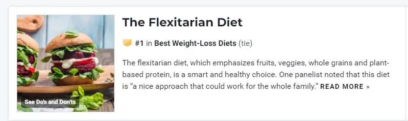 弹性素食在整体最佳饮食榜中,和得舒饮食并列第二,同时它还荣获了最佳减重饮食冠军的称号。相较于严格素食,弹性素食更易坚持,而且保证了营养的全面摄入,长期实行也不会对身体造成不好的影响。