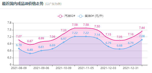 而春节前还将迎来一次油价调整(1月29日24时)累计涨幅已达305元/吨,折算后高达0.26元/升。