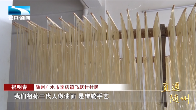 随州广水市李店镇飞跃村村民 祝明春:“我们祖孙三代人做油面是传统手艺,做得好、又好吃,面还没出来,买面的人都来了,非常好销。”