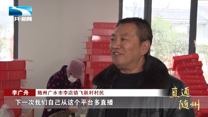 随州广水市李店镇飞跃村村民 李广舟:“这是第一次直播,通过尝试直播还是很有意思,下一次我们自己从这个平台多直播,把我们村农副产品卖出去,大家在一起有个过年气氛都很圆满。”