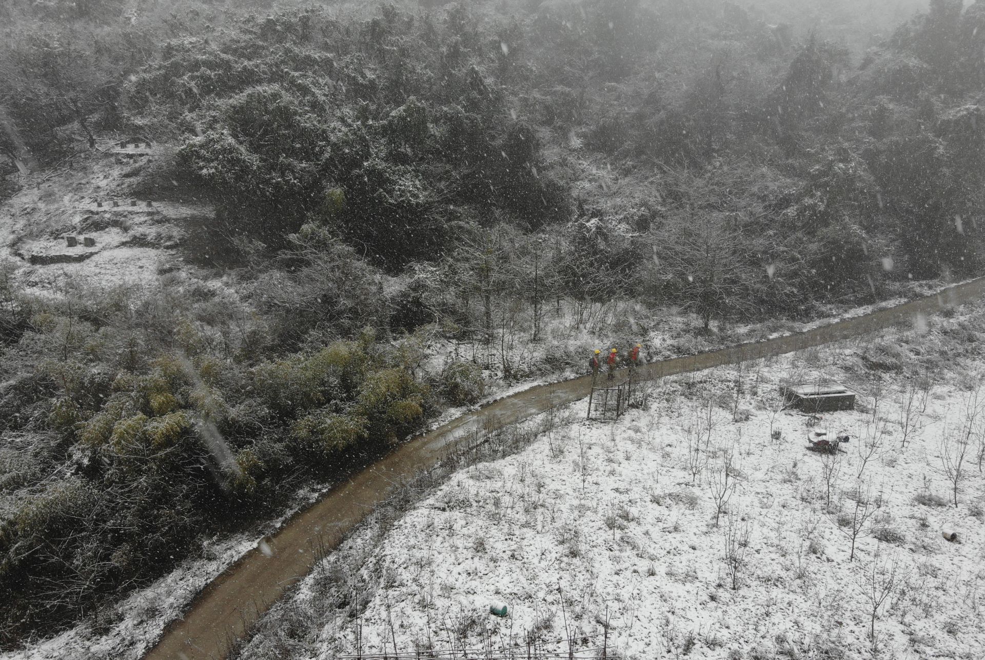 副班长陈亮46岁,有20年的工作经验,是此次巡线负责人。成员叶俊38岁,从事输电带电检修的他,也是名无人机“达人”,由于家在本地,主动参加了巡视工作。27岁的朱培基,2020年研究生毕业分到输电专业,这是他头一回参加雨雪天气特殊巡视。