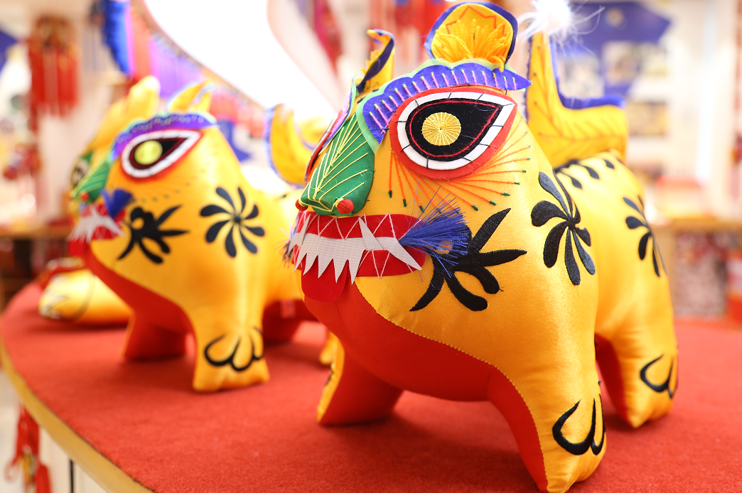 今天,主播也体验了一次缝制黎侯虎。针线穿梭,一个寓意“平安”的黎侯虎耳朵在主播手中制作完成。