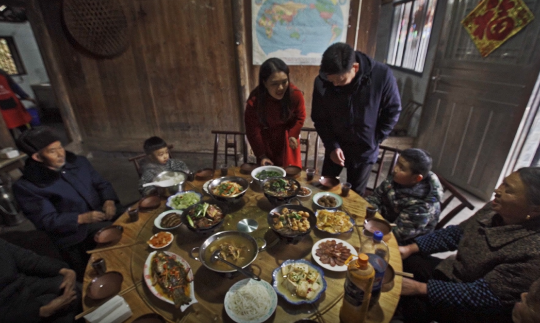 村民们聚在一起贴对联、吃年饭,伴随着打糍粑的“嘿哟”声,这年味儿也就有了。